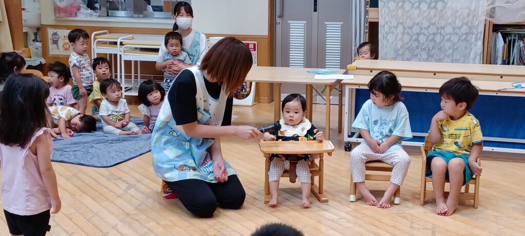 初めての誕生会で、ぴよぴよさんは緊張していましたが、