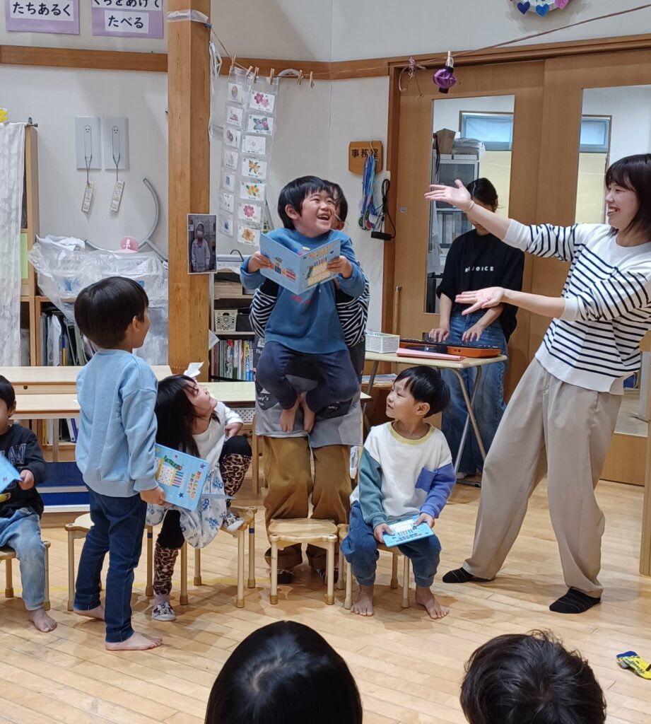 きらきらさん(2歳児クラス)わくわくさん(3歳児クラス)は、注目を浴びて喜んでいます。