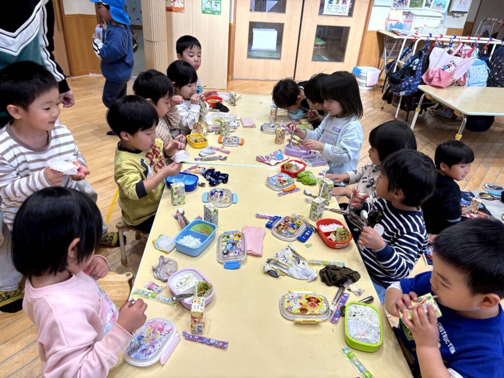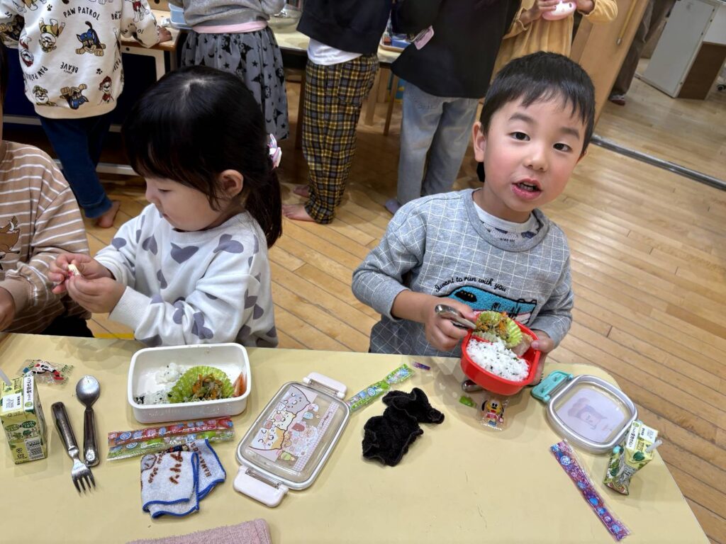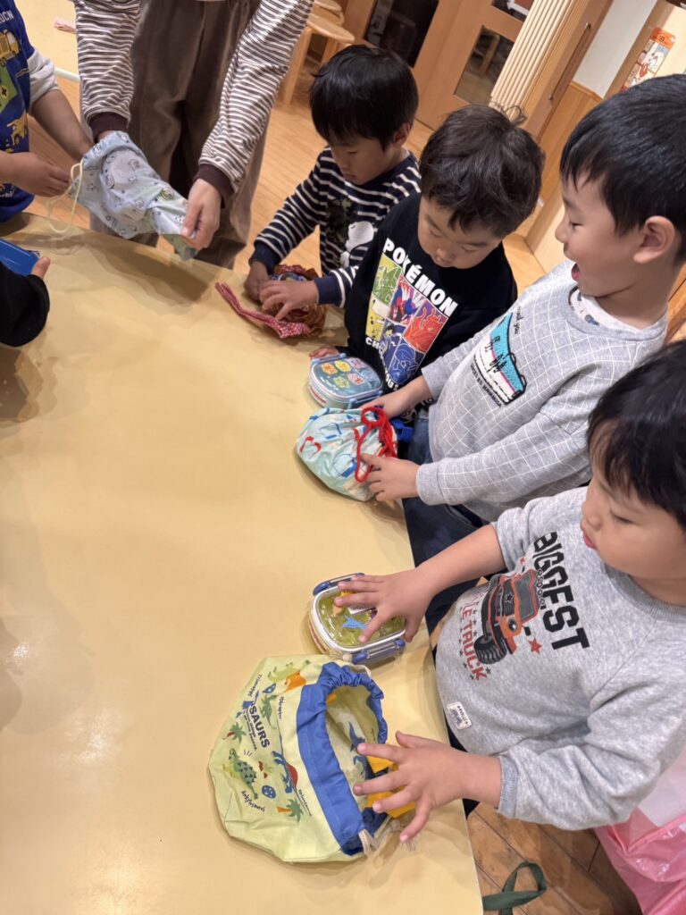 そして、わくわくぐみ(3歳児クラス)さんのお弁当デビューの日です😄